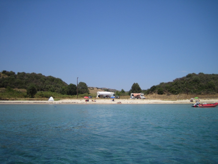 Am nächsten Morgen wurden die Vorräte bei Lidl aufgefüllt. Weiter ging es Richtung Sithonia, Ziel Sarti wo wir eine herbe Enttäuschung erlebt haben. Ein Graben versperrte unsere Bucht garniert mit einem Schild Camping verboten. Kein Wunder, ein Italiener ließ direkt auf dem Platz sein Abwasser ab L .